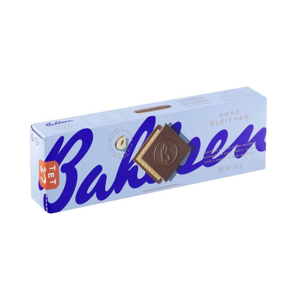 Biscoito de chocolate extremamente delicioso, com certeza vale a pena experimentar. Feito com: açúcar, farinha de trigo, gordura vegetal de palma, manteiga de cacau, avelãs moídas, massa de cacau, leite desnatado em pó, produtos de soro de leite, manteiga clarificada, cacau desengordurado em pó, lactose, leite integral em pó, xarope de açúcar invertido, sal, gema de ovo em pó, especiarias, emulsificante lecitina de girassol, aromatizante, regulador de acidez carbonato de sódio.