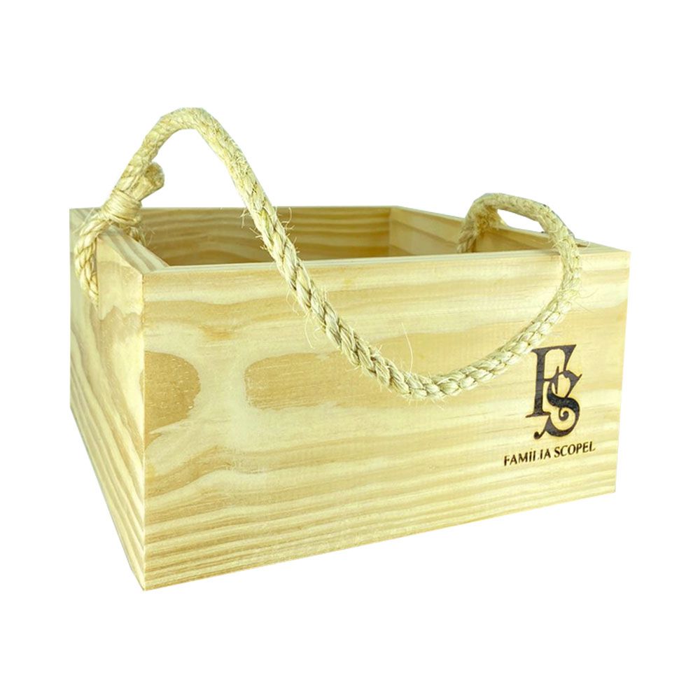 Caixa Quadrada Pinus com Corda 25x25x12 - ideal para 7 a 10 itens