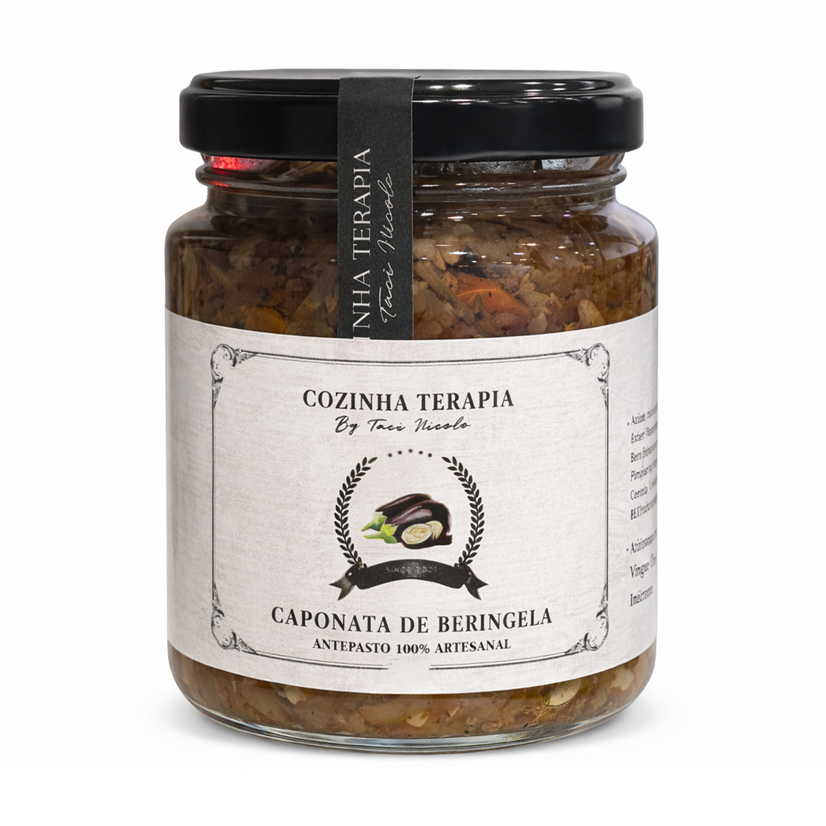 A Caponata de Berinjela Cozinha Terapia 240g é um antepasto artesanal sofisticado, inspirado na tradicional receita italiana, que combina ingredientes selecionados com preparo cuidadoso para oferecer sabor marcante, textura rica e equilíbrio perfeito entre doce e ácido.