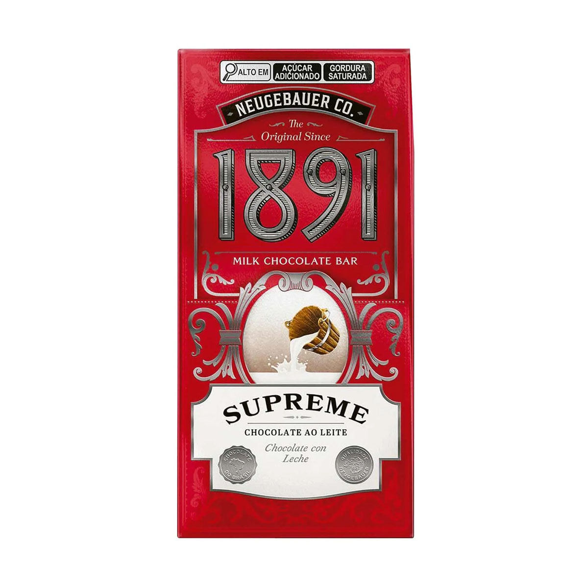 Chocolate ao Leite Supreme, da marca Neugebauer, em embalagem com 90 gramas. Parte da linha 1891, oferece uma experiência diferenciada no paladar. Preparado a partir de uma seleção de ingredientes de qualidade, combina o sabor intenso do cacau com a suavidade do leite, equilibrando doçura e amargor na medida certa. Com textura cremosa, que derrete com facilidade, conta com aroma envolvente, que traz notas frutadas. Perfeito para consumir puro, como sobremesa ou lanche, por exemplo, o chocolate também pode ser utilizado no preparo de pratos variados, como ganaches, bolos, biscoitos, caldas, cookies e muito mais.