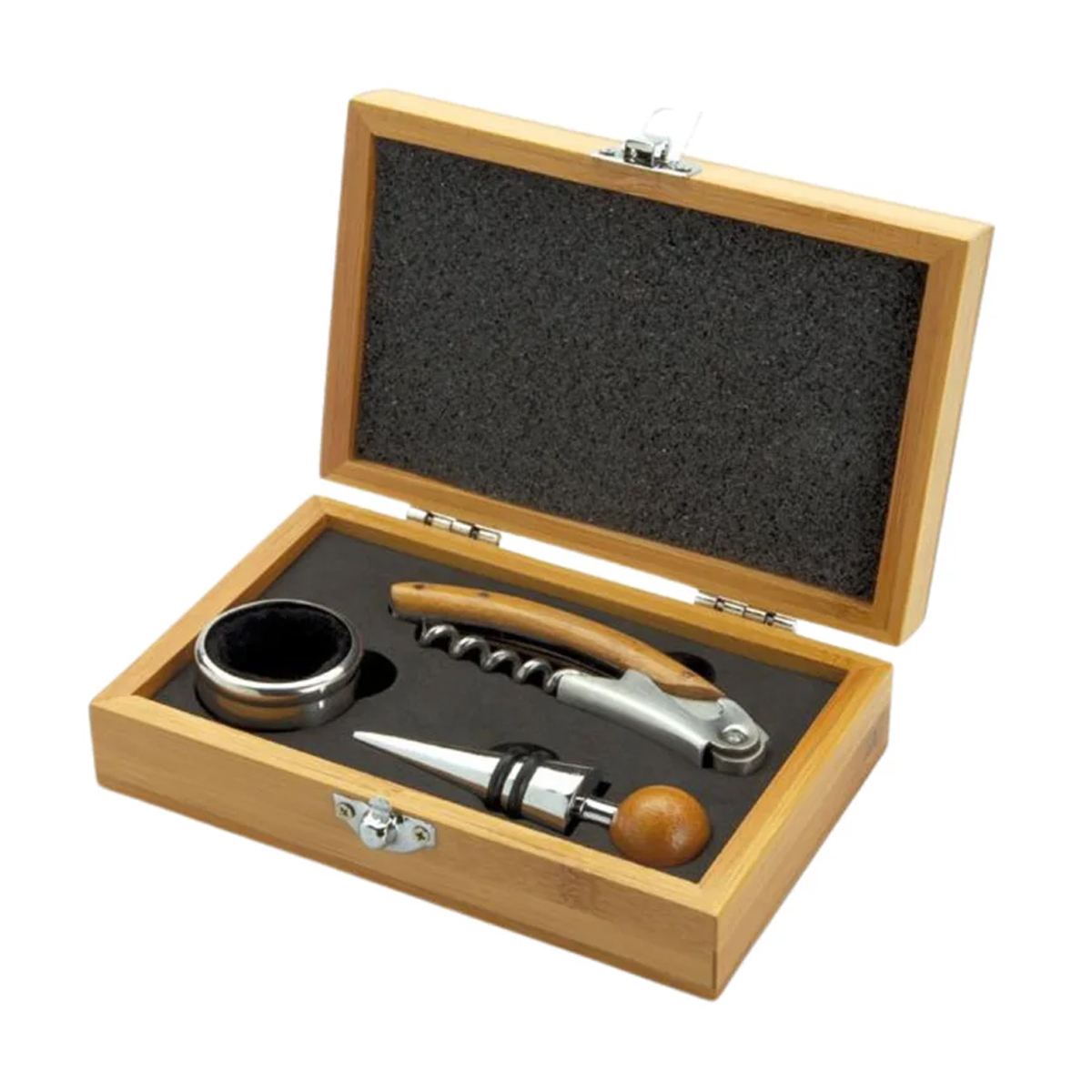 O Jogo de Acessórios para Vinho Estojo Bambu é uma escolha elegante e funcional para os apreciadores de vinho. Produzido com materiais de alta qualidade e acondicionado em um estojo de bambu natural, oferece resistência, durabilidade e um visual sofisticado que valoriza qualquer ambiente ou presente.