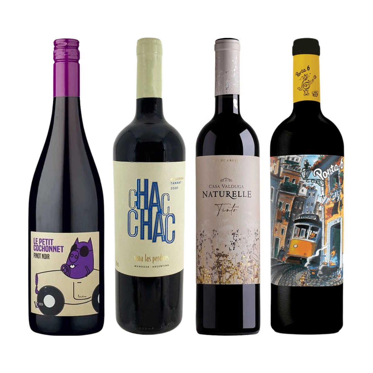 Uma seleção pensada para quem busca vinhos fáceis de beber, cheios de fruta e com ótima versatilidade para o dia a dia. Este kit reúne rótulos da França, Argentina, Brasil e Portugal, explorando estilos leves, aromáticos e equilibrados. Do frescor delicado do Pinot Noir francês à intensidade frutada do Tannat argentino, passando pela maciez brasileira e pela jovialidade portuguesa, é a escolha ideal para diferentes momentos e paladares.