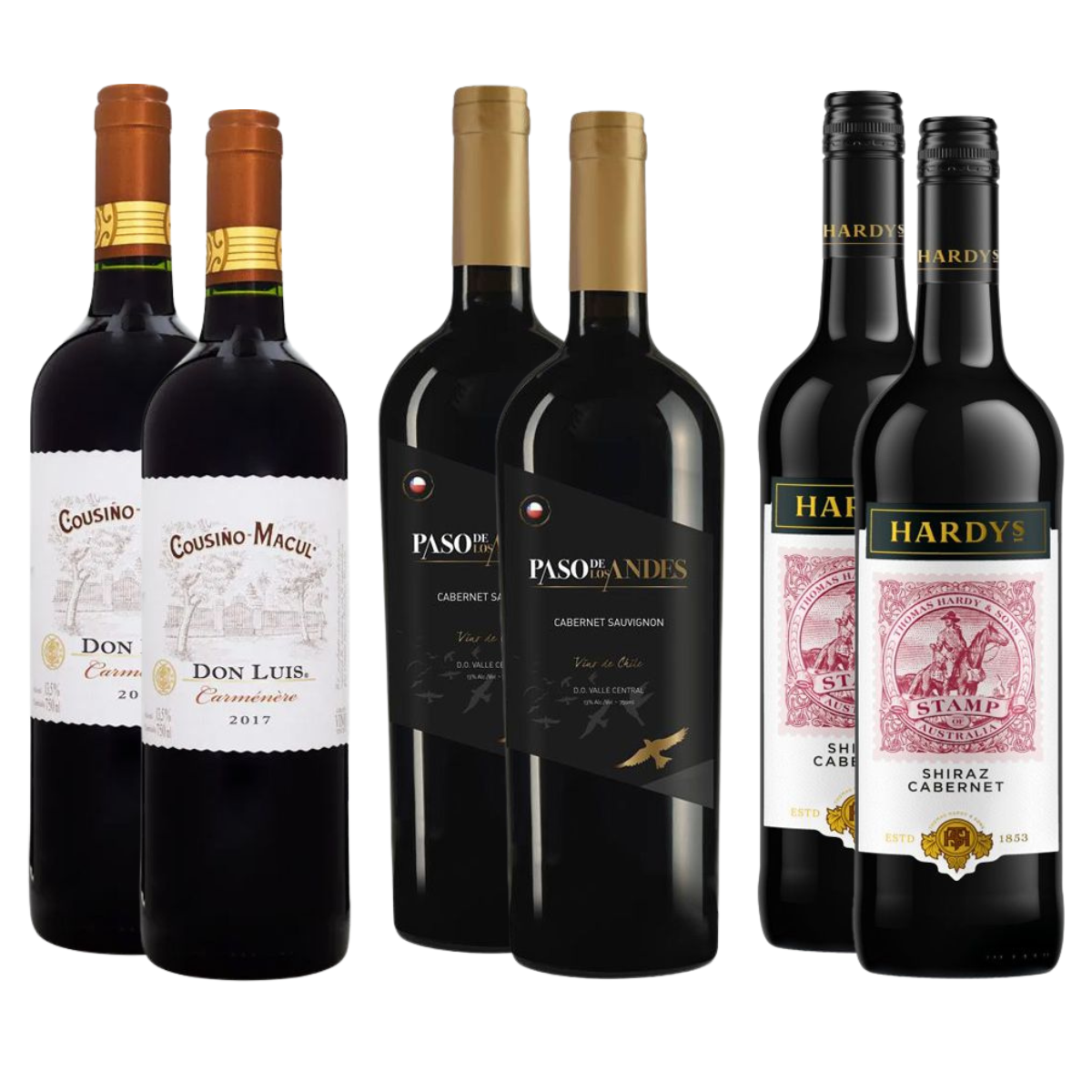 O Kit 6 Vinhos Malbec & Cabernet do Novo Mundo reúne rótulos intensos e envolventes de países referência, combinando a força da Cabernet Sauvignon com a elegância da Malbec em uma seleção perfeita para quem aprecia tintos expressivos e cheios de personalidade.