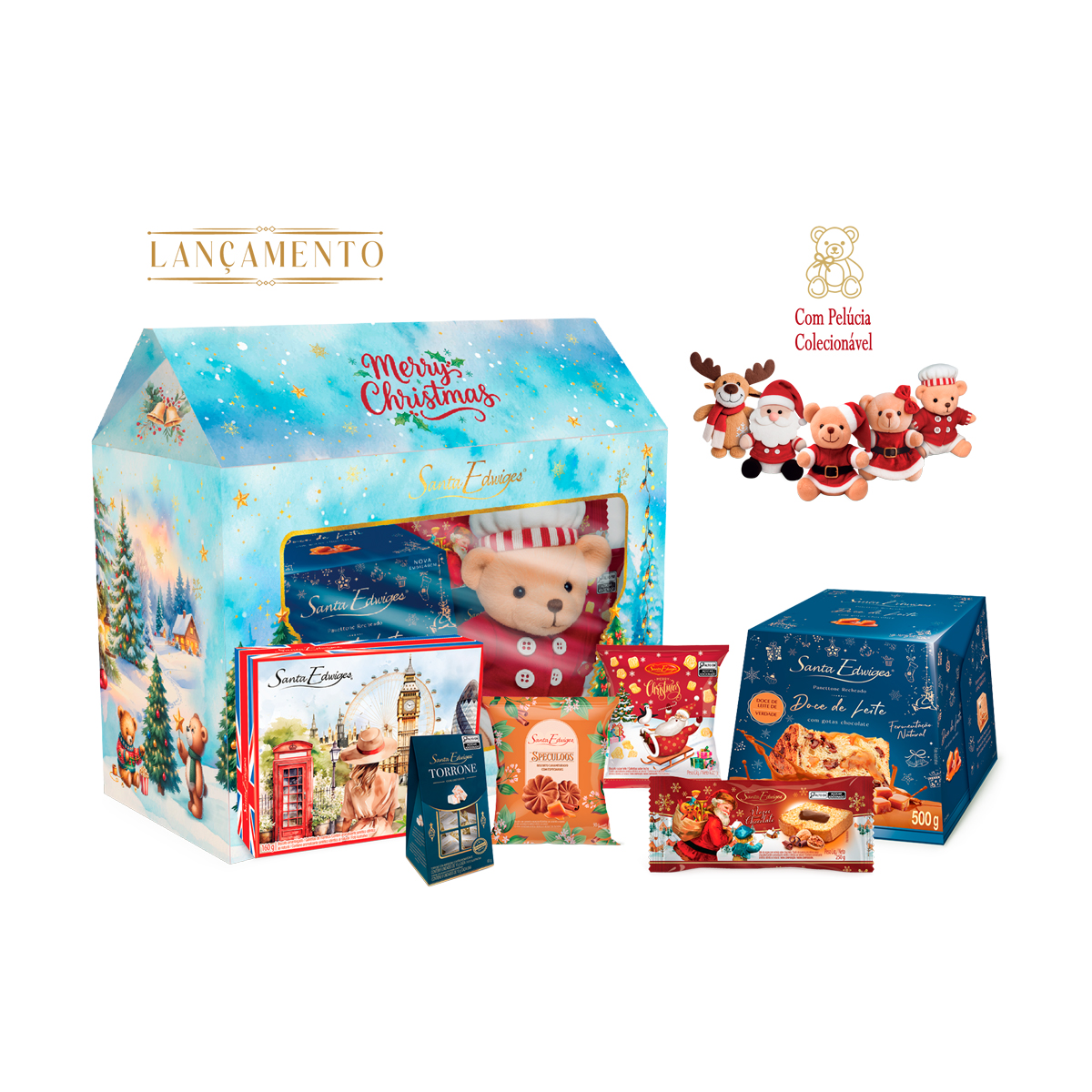 O Kit Sweet Christmas com Pelúcia + 6 Itens Santa Edwiges é um presente completo, encantador e perfeito para celebrar o espírito natalino. Acompanha uma pelúcia colecionável exclusiva e diversos produtos selecionados da Santa Edwiges, combinando sabores tradicionais, embalagens temáticas e toda a doçura característica da marca.