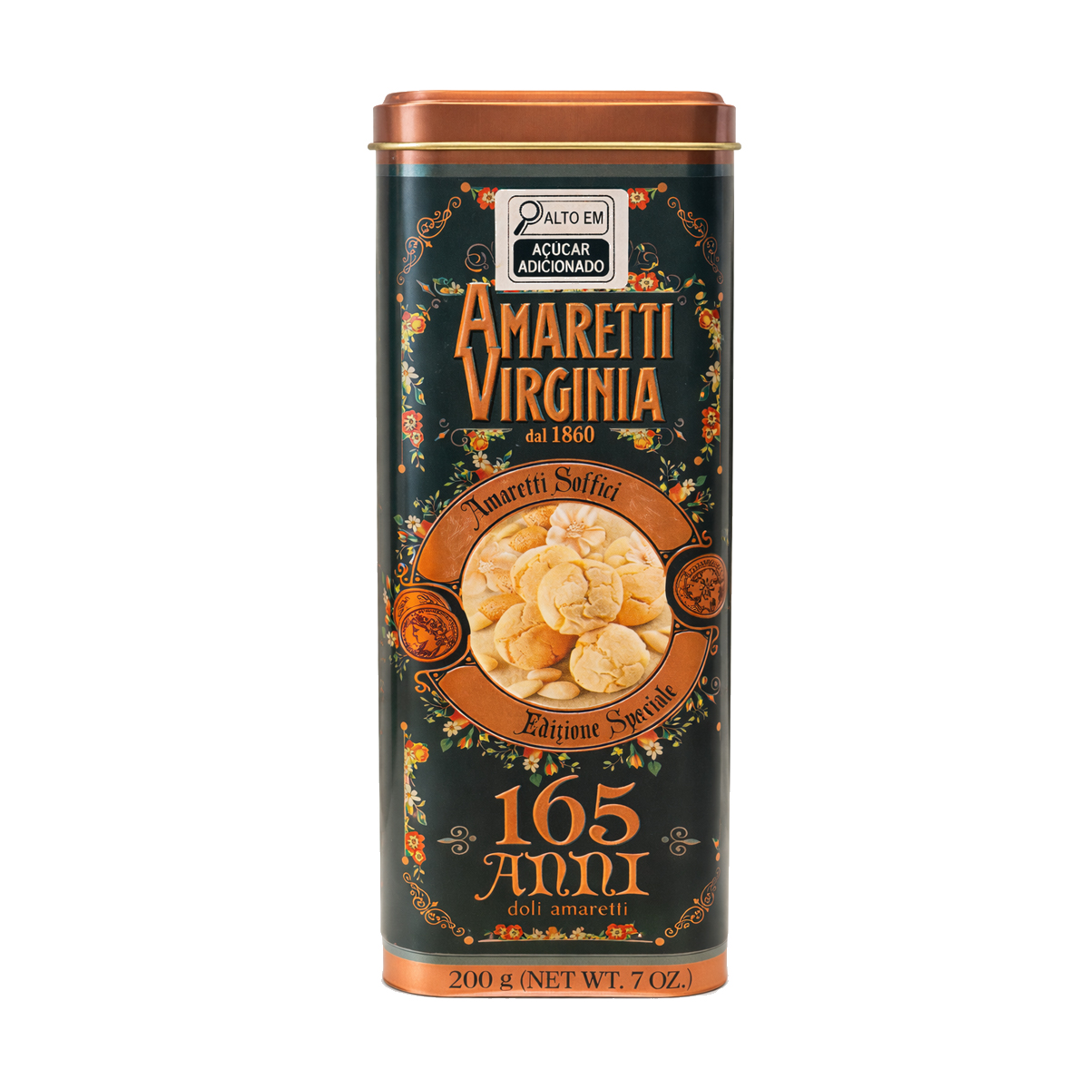 A Lata com Amaretti Macio 165 Anni Virginia 200g é um biscoito italiano premium que celebra a tradição da confeitaria da marca Amaretti Virginia, fundada em 1860. Esta edição especial comemorativa “165 Anni” combina a clássica receita artesanal com uma embalagem elegante em lata decorativa, tornando o produto ideal tanto para consumo quanto para presentear.