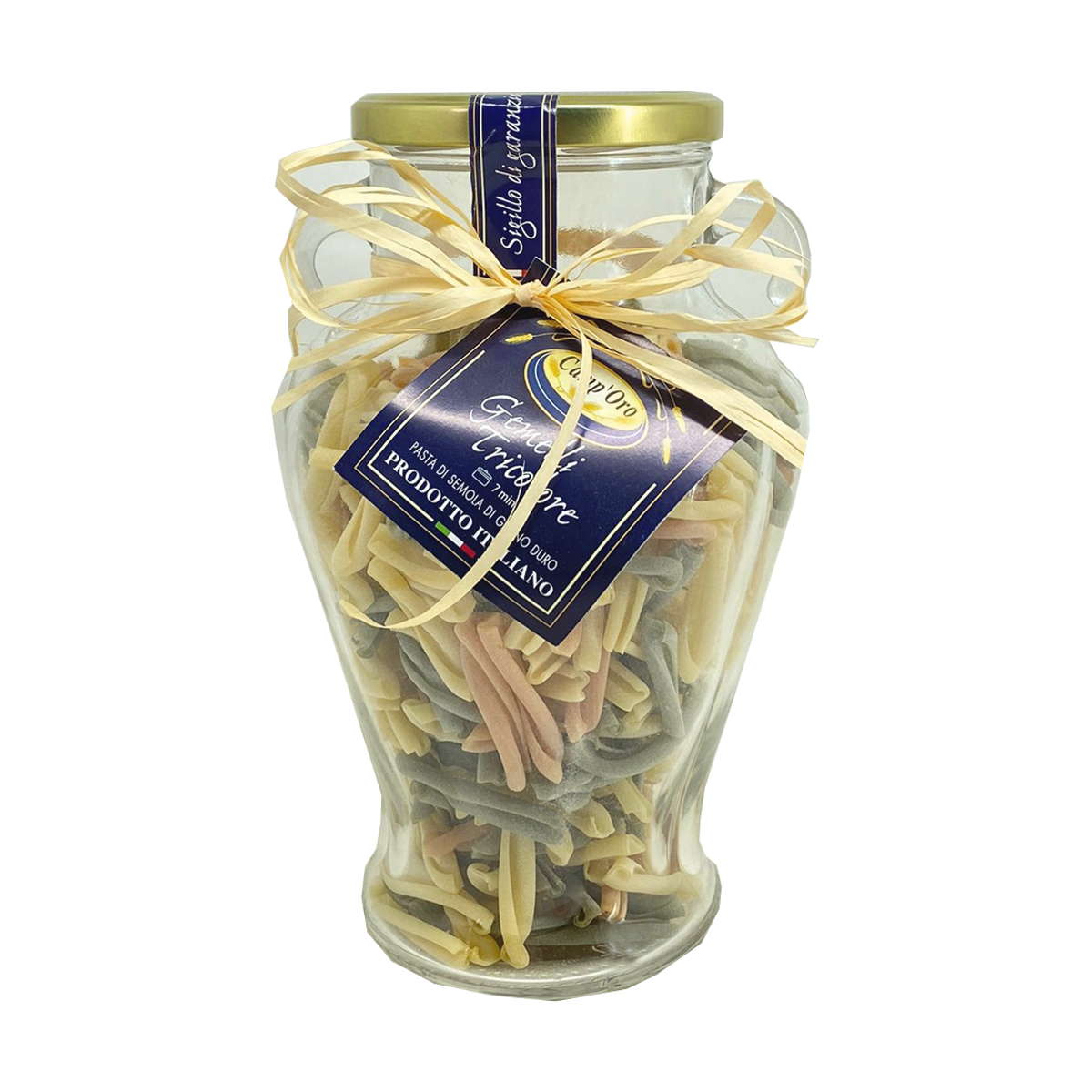 A Massa Gemelli Tricolore em Vaso Camp'Oro 500g é uma massa artesanal de alta qualidade, feita com ingredientes selecionados e inspirada nas cores tradicionais da culinária italiana. Seu formato trançado e tricolor adiciona charme e sofisticação aos pratos, tornando qualquer refeição mais atrativa e saborosa.