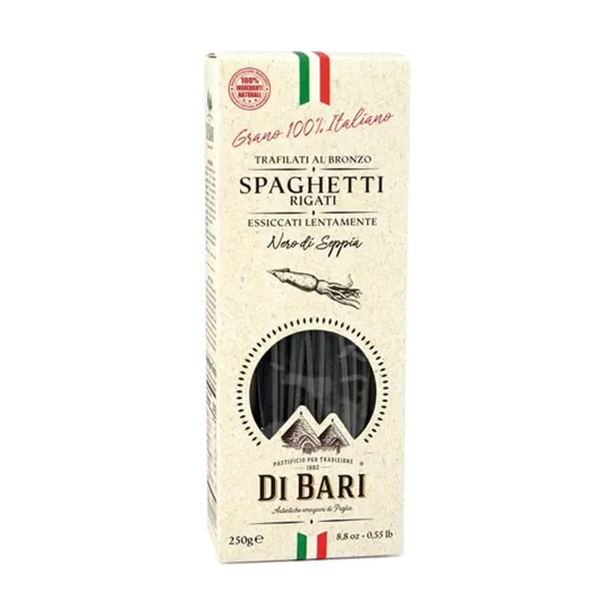 A Massa Spaghetti al Nero di Seppia Di Bari 250g é uma especialidade italiana refinada, elaborada com tinta de lula natural que confere à massa sua coloração negra característica e sabor levemente marinho. Produzida pela tradicional Di Bari, reconhecida pela excelência na fabricação de massas artesanais, esta massa combina tradição, qualidade e sofisticação em cada fio.