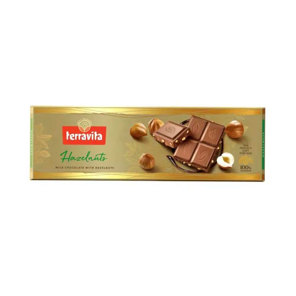 A barra de chocolate ao leite com avelã Terravita é um produto delicioso e de alta qualidade que irá satisfazer todos os seus desejos por um chocolate indulgente. Feita com ingredientes cuidadosamente selecionados, esta barra de chocolate é a combinação perfeita de cacau rico e cremoso com pedaços crocantes de avelã. Ao morder a barra de chocolate, você sentirá o sabor suave e sedoso do chocolate ao leite derretendo em sua boca.