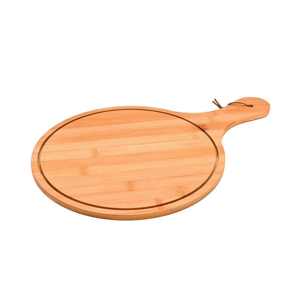 Tábua em Bambu 30 cm para servir com alça. Possui sulco em toda volta. Ideal para servir churrasco, petiscos ou montar tábua de frios.